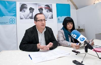 O vicepresidente da Deputación de Lugo, Antonio Veiga, xunto coa xerente da Rede Museística, Encarna Lago, presentan o obradoiro para invidentes Fotografía a cegas que se desenvolve nos catro museos da Rede Museística nos meses de abril e maio de 2012. Trátase dunha experiencia pioneira na que particiapn 7 invidentes, a terapeuta, Mercedes Cabada, os fotógrafos, Iago Eireos, Germán Limeres, Xosé Reigosa e Antonio López, e que rematará no mes de xuño coa exposición dos traballos realizados e a elaboración dun documental a cargo de Henrique Lamas.